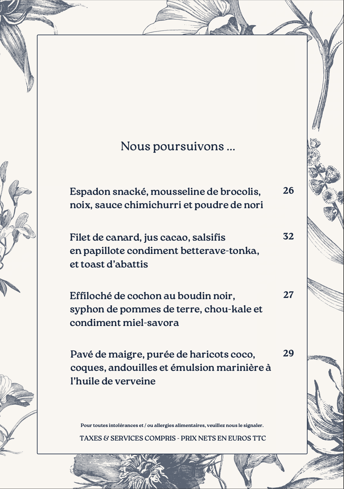 QUELQUES ASSIETTES À LA CARTE